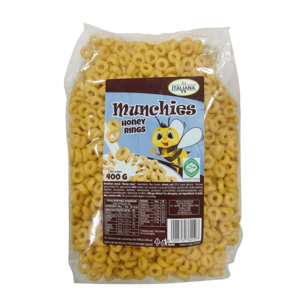 Munchies is a breakfast cereal product, it comes in a 400-gram package. It is available in a variety of flavours and forms.